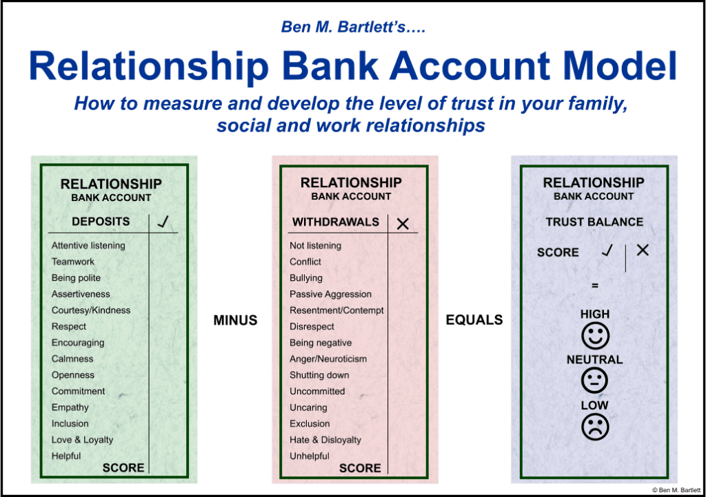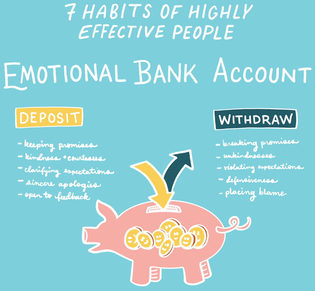 - You can make deposits into or withdrawls from your personel /emotional bank account by the things you think, say and do.